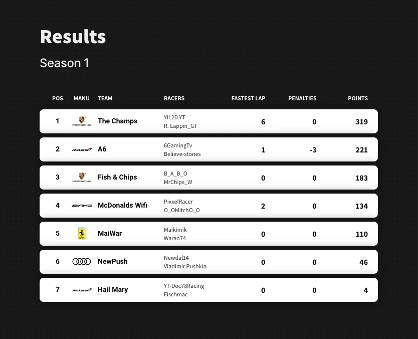 The League stood out for its clean racing, sportsmanship, and friendly competition, making it one of the most enjoyable and fair leagues to date. Every round brought new challenges, but the dedication from the grid made each event an absolute blast.